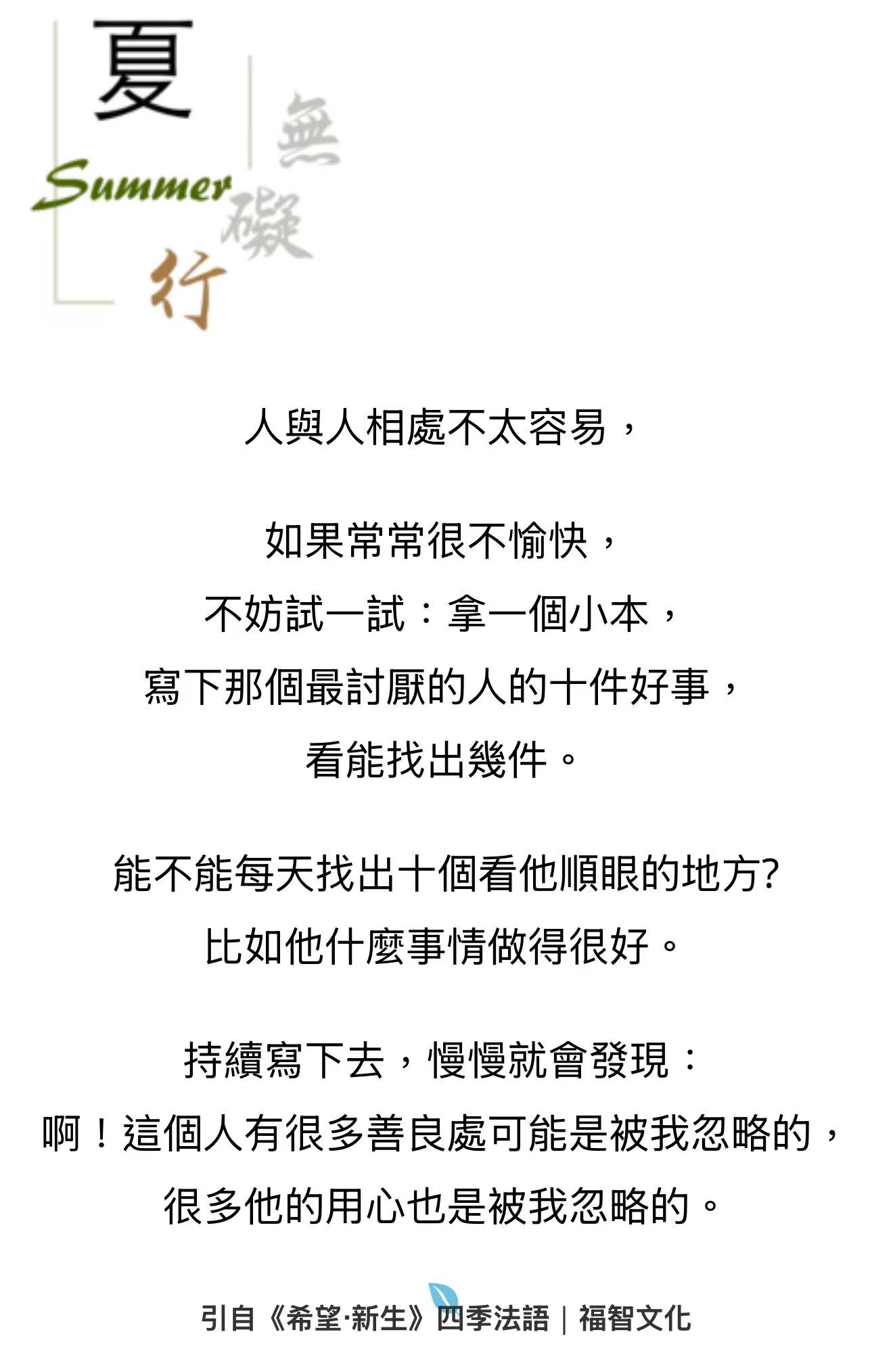當以一種完全放空且無我的姿態去生活,去除掉心中所有的善惡、喜好與憎恨之後,才會發現原來一切的好與不好都是自己心生的。