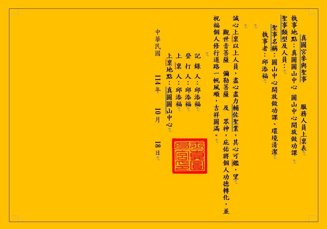 真圓宮參與聖事 服務人員上稟表