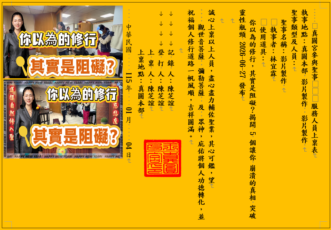 真圓宮參與聖事 服務人員上稟表