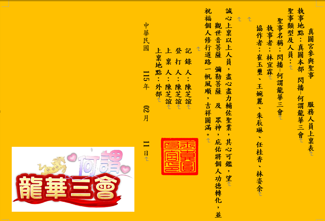 真圓宮參與聖事 服務人員上稟表