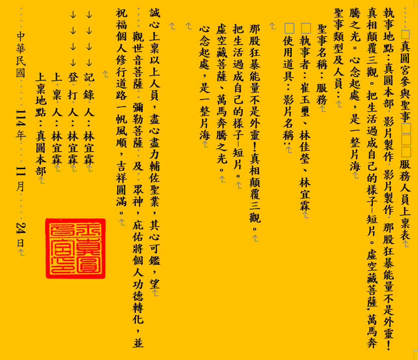 真圓宮參與聖事 服務人員上稟表