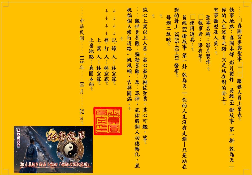 真圓宮參與聖事 服務人員上稟表