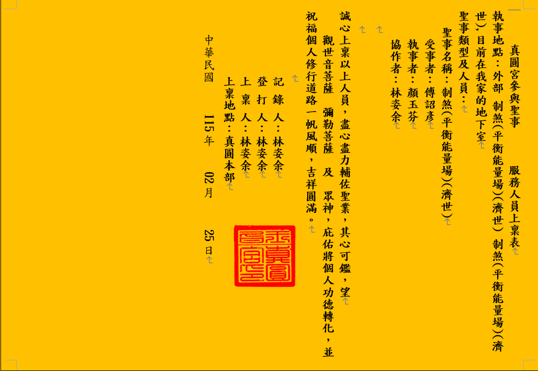 真圓宮參與聖事 服務人員上稟表