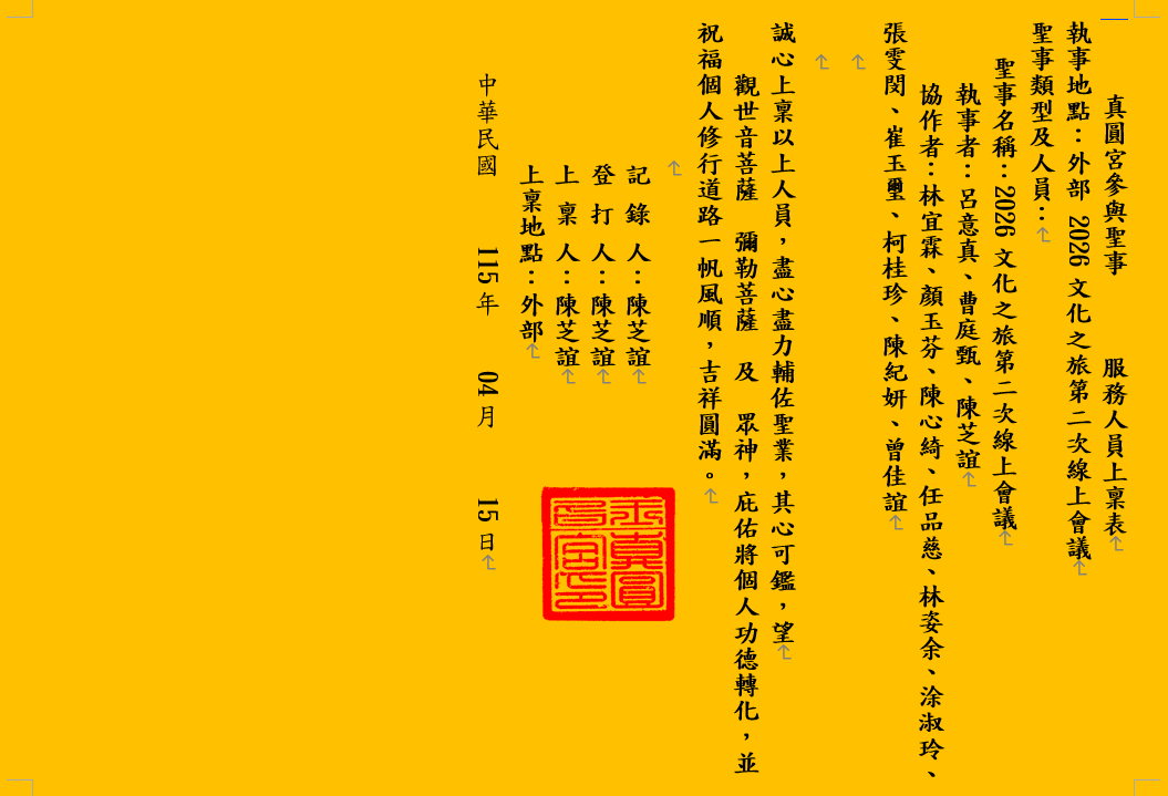 真圓宮參與聖事 服務人員上稟表